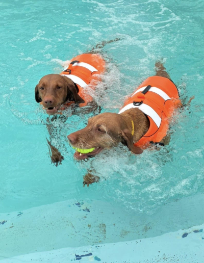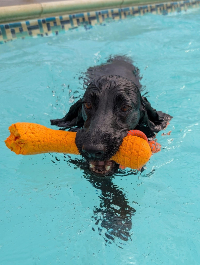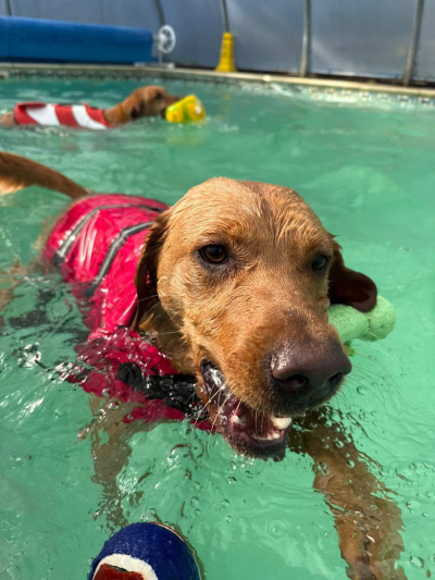 Due to water intoxication, we encourage owners who use the pool to bring floating toys ONLY and to ensure all dogs have time to get out of the pool to relax.